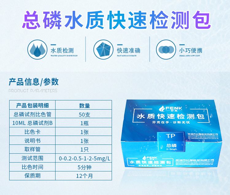 3.水體中磷主要以較穩(wěn)定的磷酸根離子形式存在,故本產(chǎn)品以測(cè)定磷酸根離子來判斷水中總磷含量。